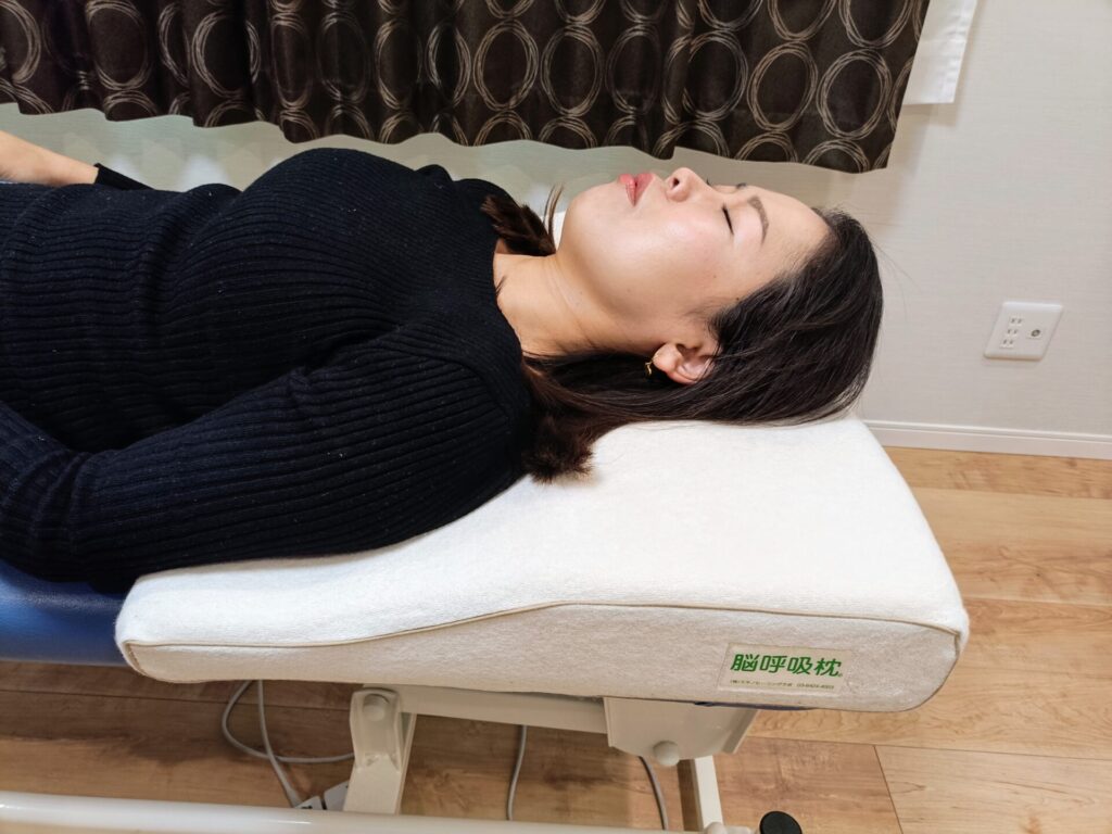 最後はより施術の効果が浸透するように、脳呼吸枕で5分ほどゆっくり休んでいただきます